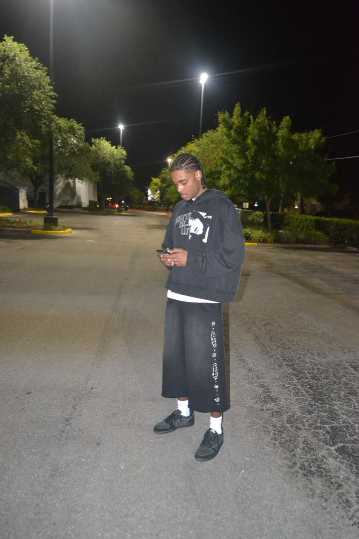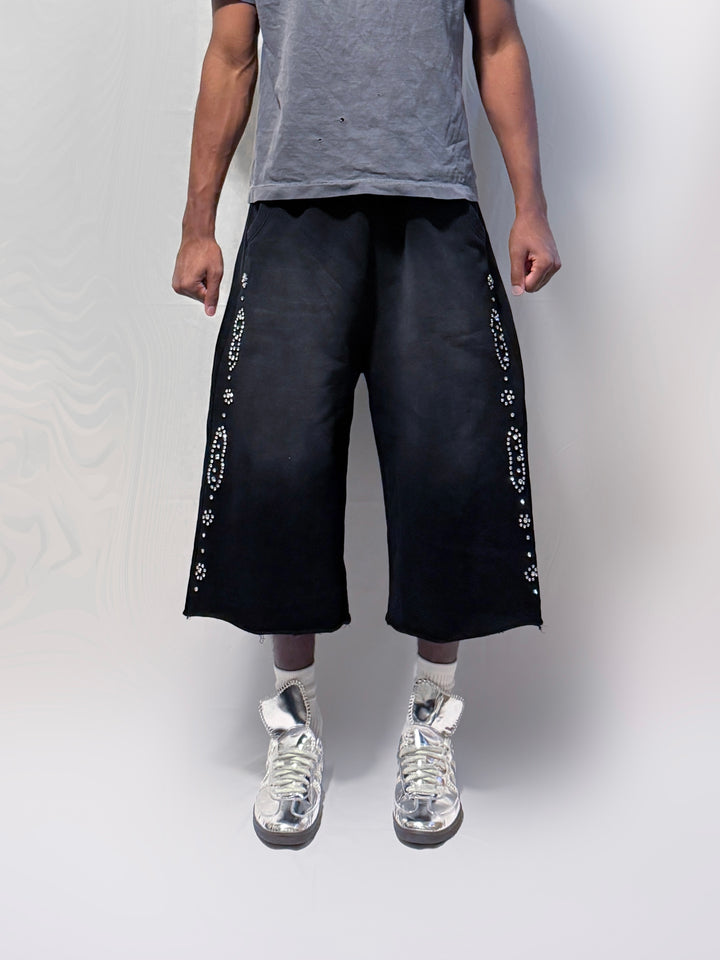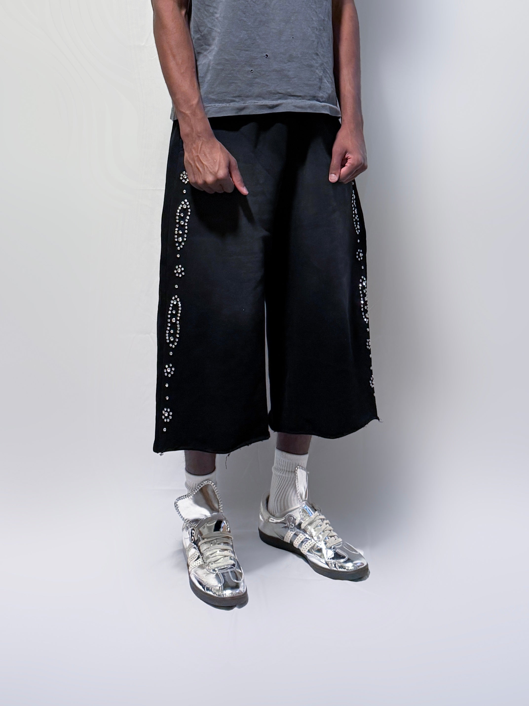 BAGGY CRYSTAL SWEATSHORTS (BLACK)